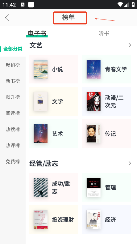 用户们可以点击主页榜单挑选符合自己口味的书籍