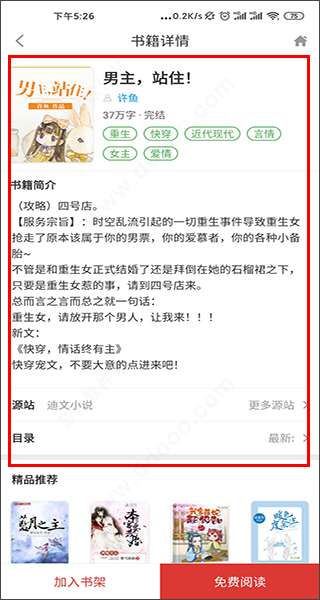 3、并有看到感兴趣的小说,单击即可查看书籍详细信息;
