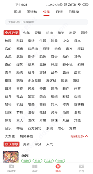 5、在“漫画”中,同样给大家带来了还想小说类型,可进行筛选,或输入关键字进行搜索查找;