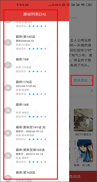 6、而且每本小说、漫画都提供了多个源站供用户随意切换选择;
